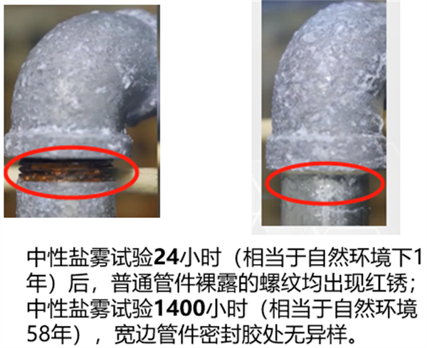 在嚴(yán)格的中性鹽霧試驗(yàn)中,玫德寬邊瑪鋼燃?xì)夤芗憩F(xiàn)驚人,歷經(jīng) 1400 小時(shí)依然無銹蝕跡象。而普通瑪鋼管件在同樣試驗(yàn)條件下,短短 24 小時(shí)便出現(xiàn)紅銹,二者防腐性能高下立判。這一卓越成績充分證明了玫德管件強(qiáng)大的抗腐蝕能力,即使在惡劣環(huán)境中,也能長期保持良好性能,大大延長了使用壽命。