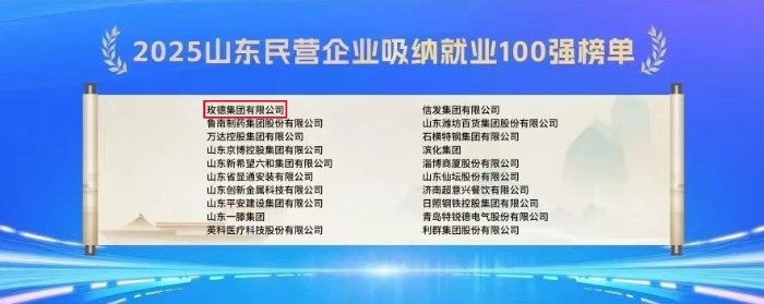 8月19日,2025山東民營企業(yè)百強系列榜單發(fā)布會盛大舉行,玫德集團入選2025山東民營企業(yè)200強、2025山東民營企業(yè)吸納就業(yè)100強。