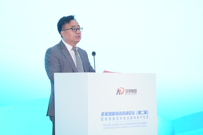 中國城鎮(zhèn)供水排水協(xié)會副會長宋蘭合在致辭中強調(diào)了保障城市水系統(tǒng)安全穩(wěn)定運行的重要性,并對玫德集團“短流程50萬噸球墨鑄管智能制造項目”的投產(chǎn)表示祝賀。他指出,高性能流體輸送產(chǎn)品是保障城市水網(wǎng)韌性與安全運行的關(guān)鍵基礎(chǔ),期待通過行業(yè)合作推動技術(shù)進步。